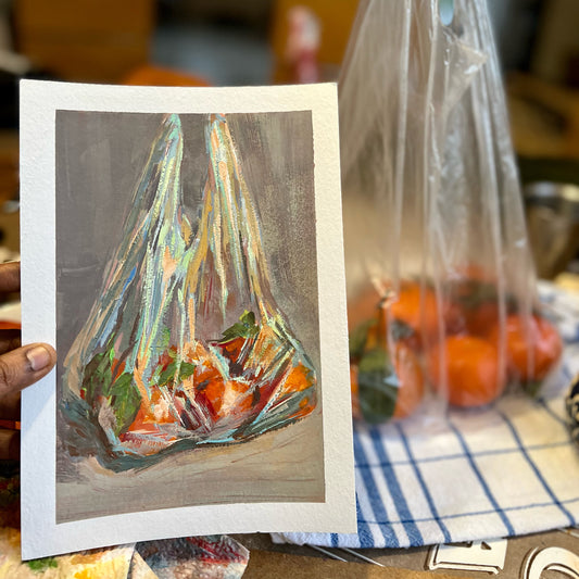 Gouache Painting - Oranges in a Bag 2