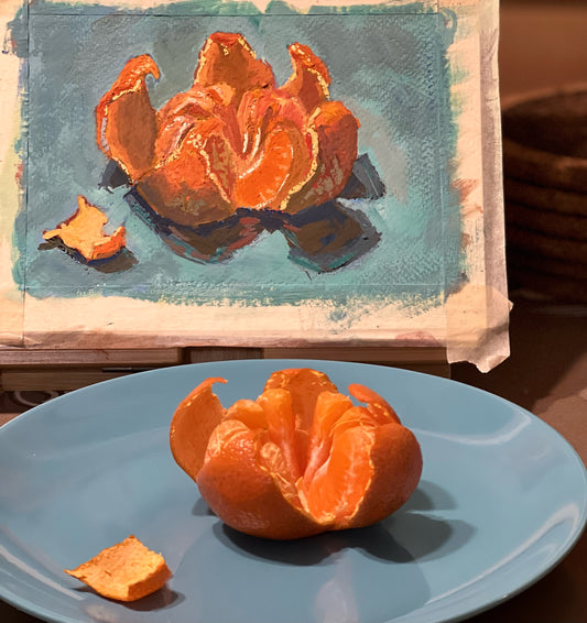 Gouache Painting - Peeled Orange on a plate!