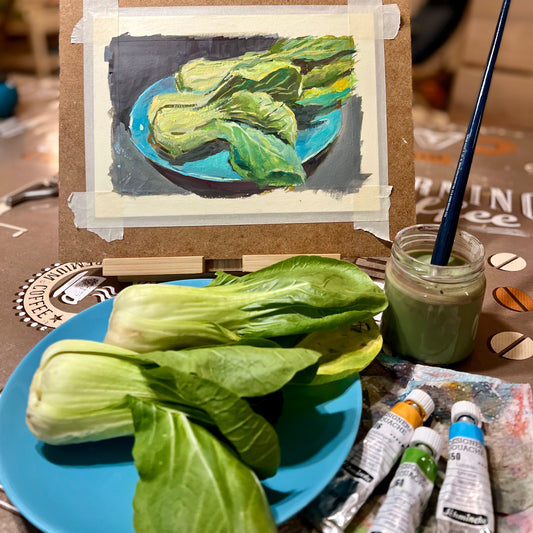 Gouache Painting - Bok Choy on a plate