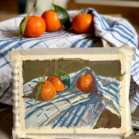 Sold outGouache Painting - Oranges on books!