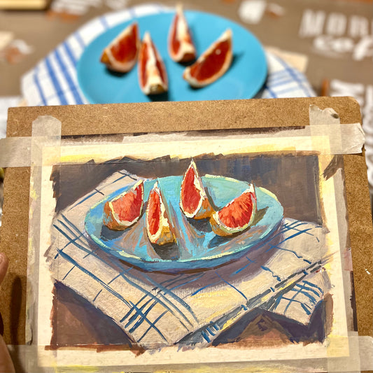 Mini Gouache Painting - Sunlit Grapefruit Slices
