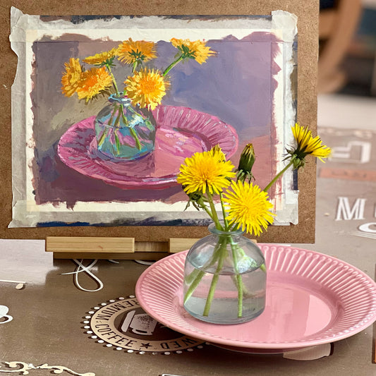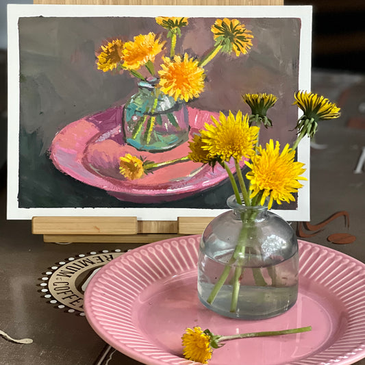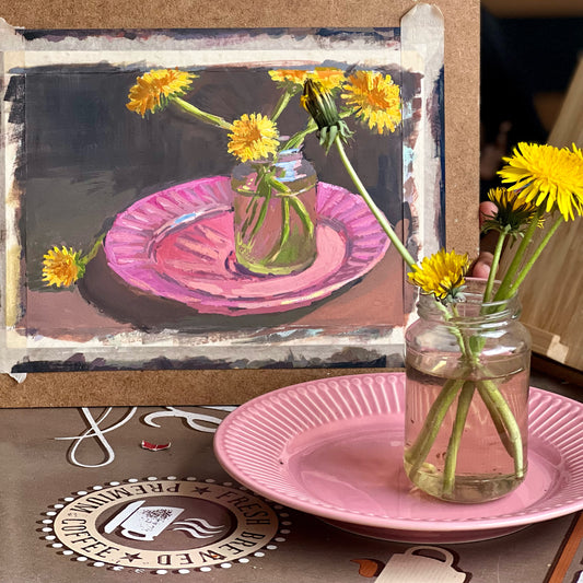 Dandelions on Pink - 1 - Gouache Painting