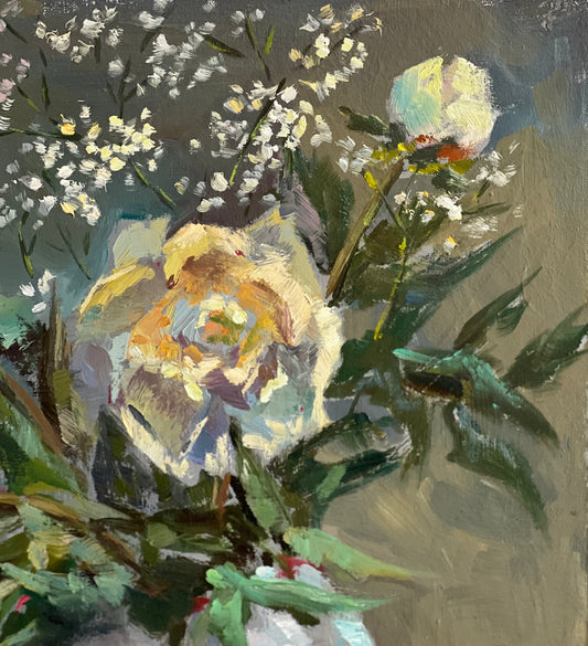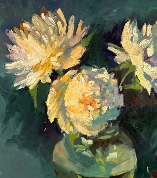 White peony party! - Large Original Oil Painting of Peony Flowers