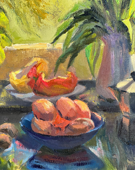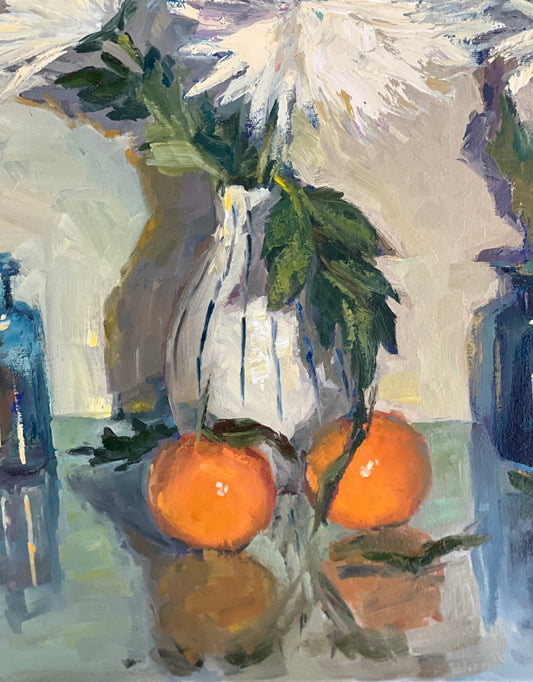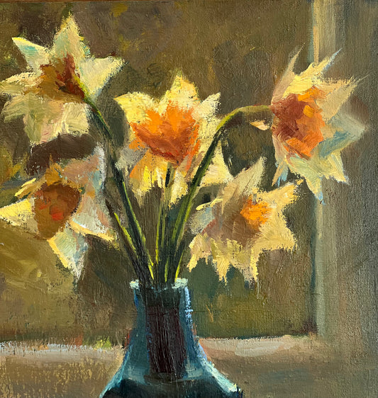 Still Life Oil Painting - Backlit Daffodils and Oranges