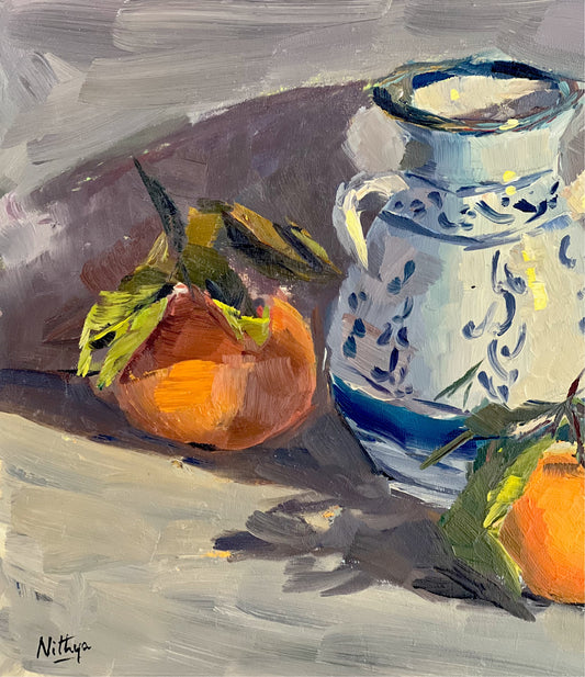 Still Life Oil Painting - Oranges and a Vase
