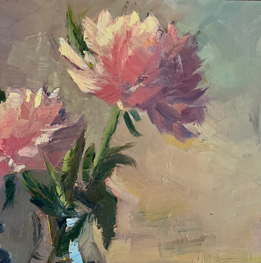 Spotlight Peonies - Original Oil Painting of Flowers