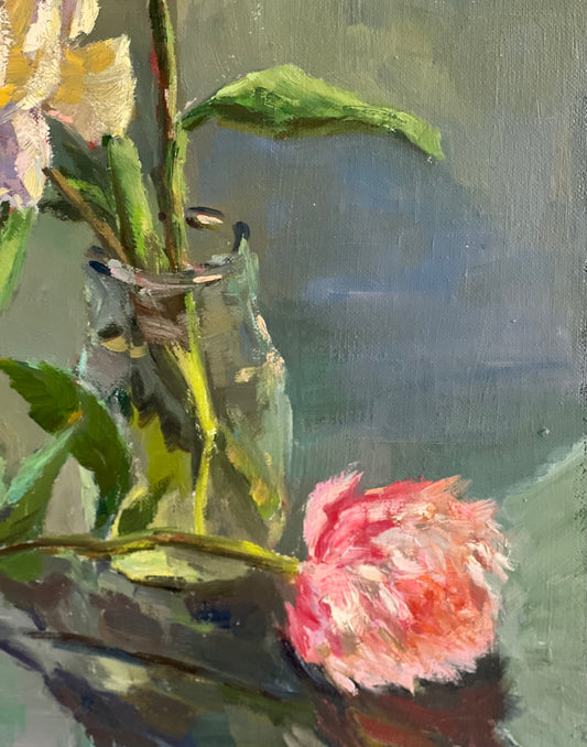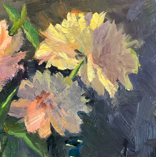 White Peonies in the Spotlight - Original Oil Painting of Flowers