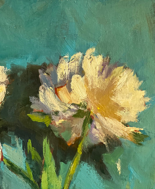 Vibrant white peonies! - Original Oil Painting of Flowers