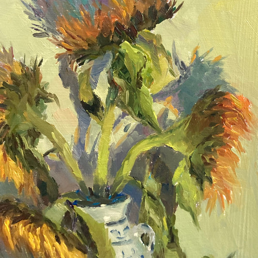 White peonies on vibrant blue! - Original Oil Painting of Flowers