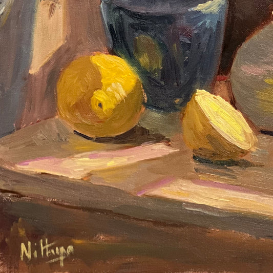 Sunday morning Lemons in the sun - Still Life Oil Painting