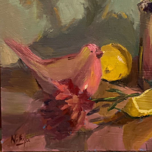 Birds Eye view of bowls and lemons - Still Life Oil Painting
