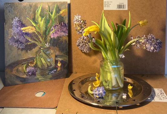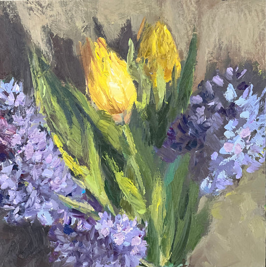 Floral Painting - Tulips and Purple Hyacinths 2