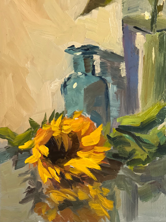 Sunflower Series 9 - Original Stilllife Painting, 8 by 12 inches