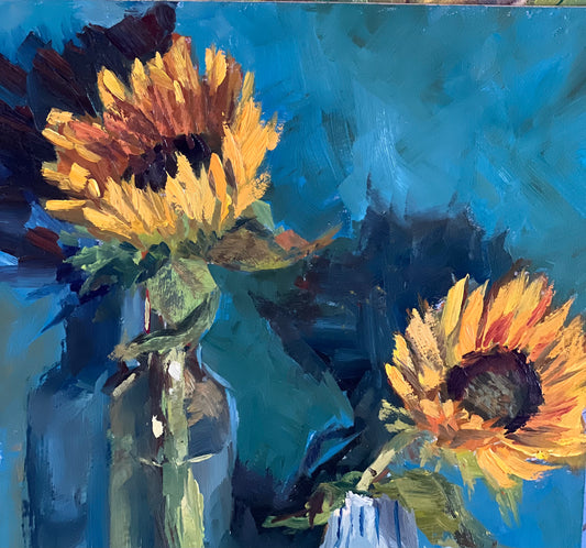 Sunflower Series 8 - Original Stilllife Painting, 8 by 12 inches