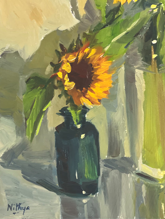 Sunflower Series 1 - Original Stilllife Painting, 8 by 12 inches
