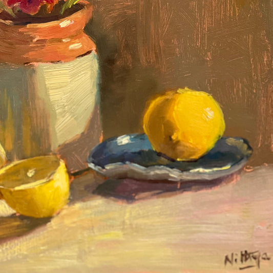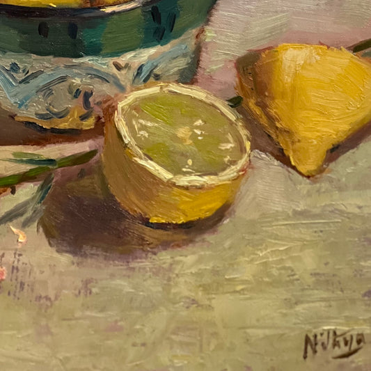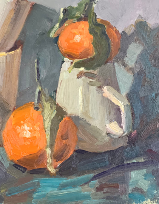 Mandarines with Blues on blue! - Still Life Oil Painting