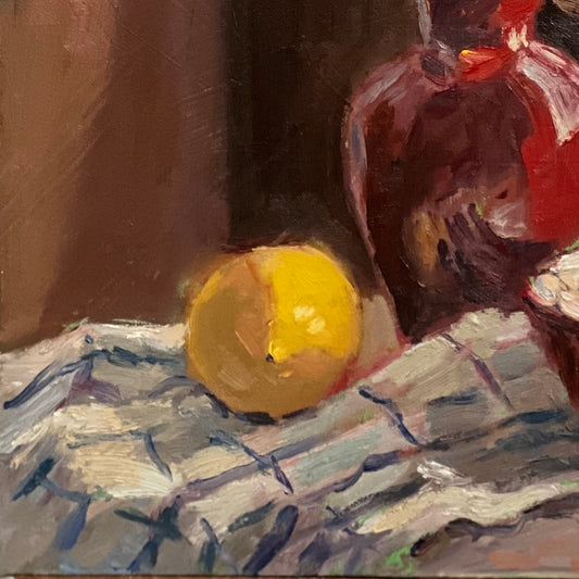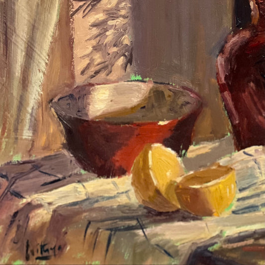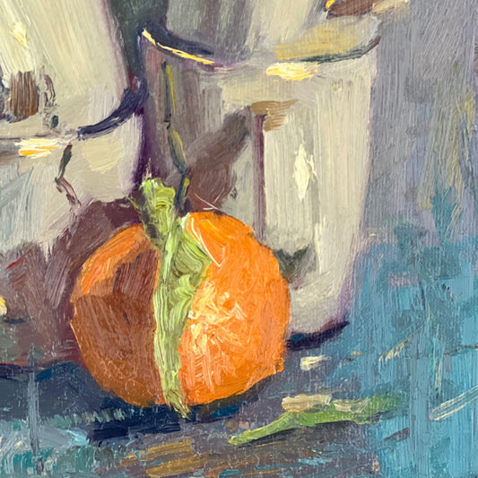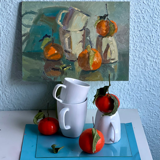 Oranges and Cups on Blue - 2 - Still Life Oil Painting